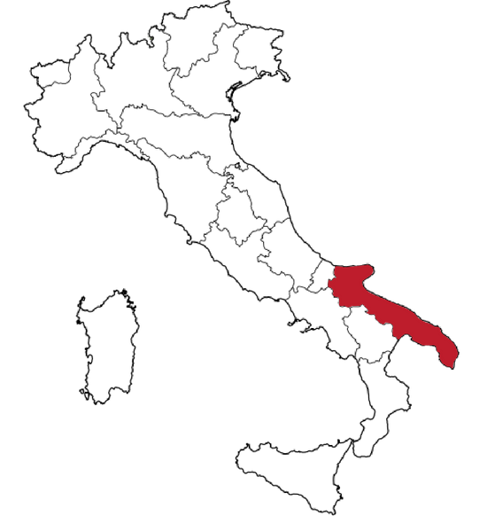 Notre Huile d'olive Extra Vierge est originaire de la région des Pouilles dans le Sud de l'Italie.